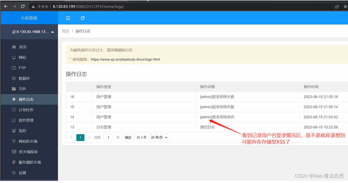 这里和宝塔那个很像,都是日志会记录用户名的操作,然后导致的XSS